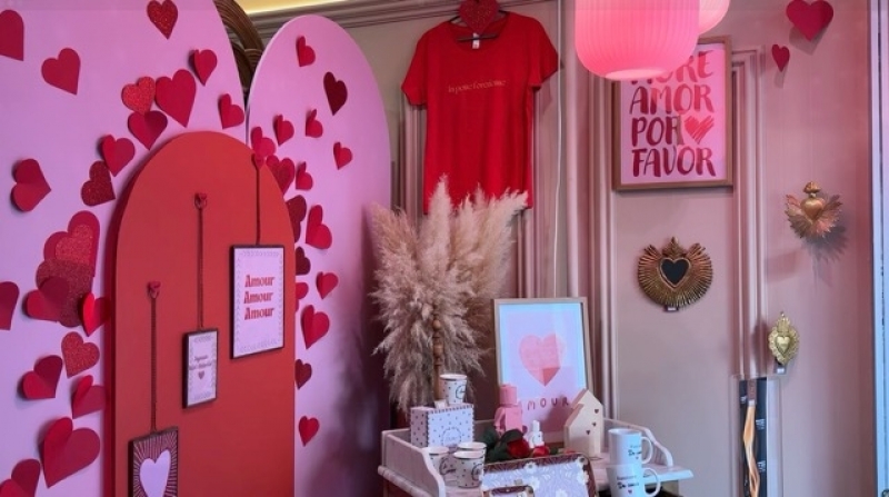 Pour se démarquer, chacun a dû faire preuve d’imagination. Dans la boutique Marchande de pépites, spécialisée dans la seconde main, la gérante a choisi de jouer sur l’idée d’unicité. « Vu que c’est de la seconde main, j’ai que des articles uniques. Donc je suis partie là-dessus, sur un seul exemplaire comme le coup de foudre. Chaque pièce a le droit d’être aimée une seconde fois », explique Bérénice. Dans sa vitrine, les vêtements et accessoires sont soigneusement sélectionnés dans les tons du moment : rouge, rose, orange, mais aussi bijoux, foulards ou encore petites roses en crochet.