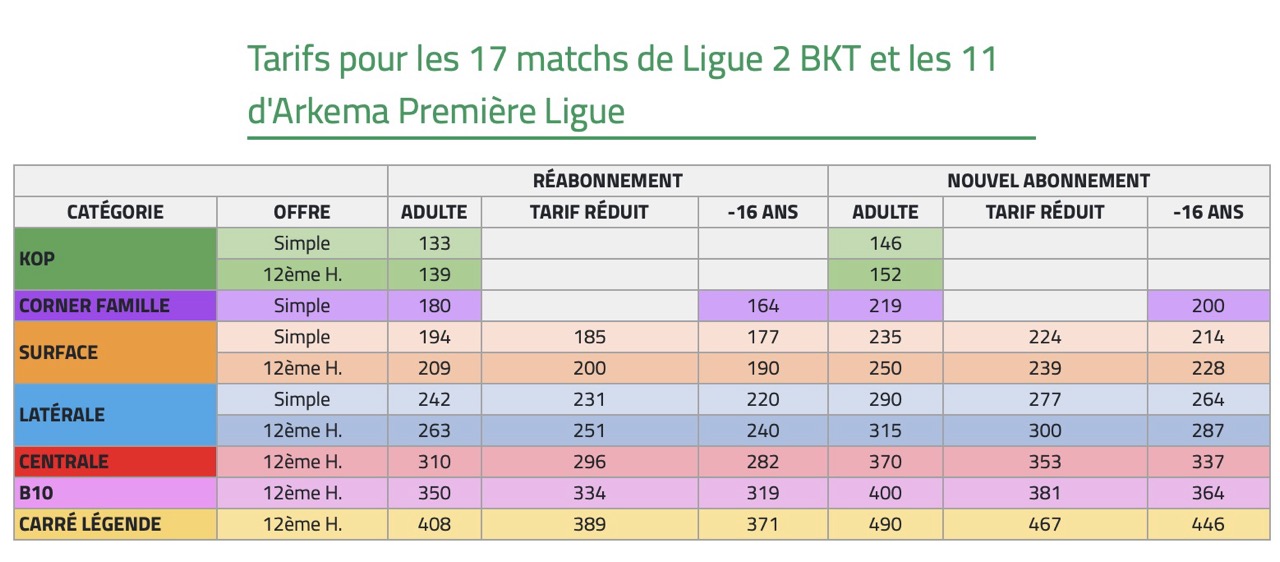 Les abonnés de la saison précédente bénéficieront d'une priorité pour renouveler leur place jusqu'au vendredi 18 juillet inclus. Passé ce délai, les sièges non renouvelés seront mis à disposition du grand public.