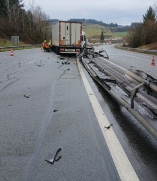 13h55⛔ : Circulation temporairement interrompue sur #A89 en direction de Lyon après la sortie n°31 Noirétable, suite à un accident impliquant un poids lourd ayant traversé le terre plein central