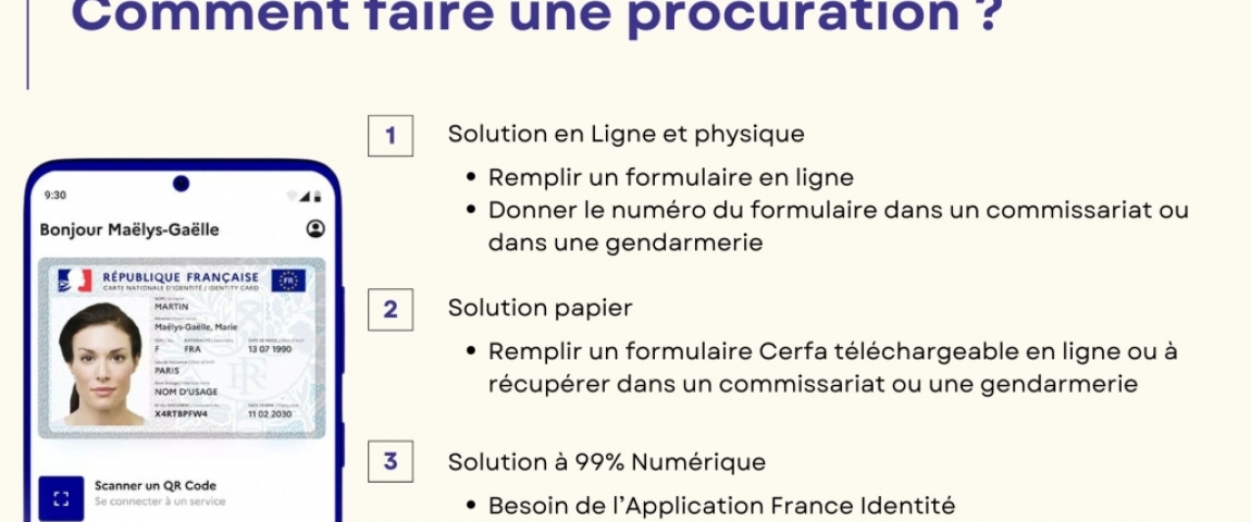 Cette vérification est permise par l'application « FRANCE IDENTITÉ », téléchargeable sur les téléphones récents. Il faut une nouvelle carte d'identité « format carte bancaire », afin de pouvoir la magnétiser au téléphone. Sur l'application mobile, vous pourrez vous connecter avec France Connect et créer un compte avec un mail et un code personnel. Une fois que vous avez suivi toutes les étapes, il faut vérifier votre identité pour toujours. Vous devrez prendre un rendez-vous en mairie avec votre carte d’identité.