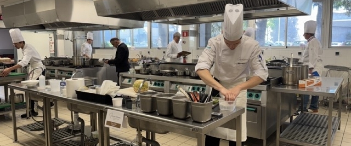 L’ambiance est électrique dans les cuisines de l’IMSÉ. Entre les crépitements des poêles et le ballet des couteaux, huit apprentis de la région jouent aujourd’hui leur place pour la finale nationale de novembre. Le défi est de taille : réaliser une création libre autour d’un panier imposé joue de porc, lentille et céleri boule sans aucun commis.