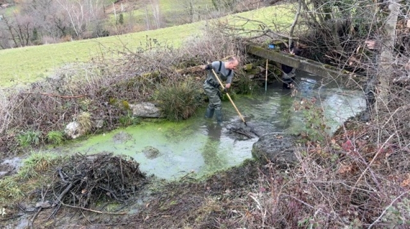 Après le retrait des branches et des végétaux, place au curage. La boue accumulée est extraite manuellement, avec précaution, afin de respecter l’équilibre du milieu. Un travail minutieux, soumis à des contraintes bien précises. « On doit faire très attention au cycle de reproduction. Début février, on est à la limite. Ensuite, on n’interviendra plus car les amphibiens précoces arrivent pour se reproduire », précise-t-elle.