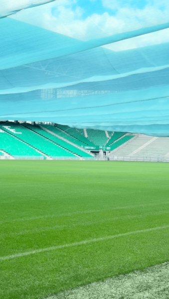 Ces voiles conçues à partir d’anciennes bâches recyclées, autrefois utilisées par les services techniques et les jardiniers de la Métropole de Saint-Étienne, offrent aujourd’hui une protection précieuse à la pelouse du stade. Elles réduisent jusqu’à 50 % les rayons UV, limitent l’élévation de la température au niveau du sol et permettent une diminution significative de l’arrosage. Résultat : une consommation d’eau en forte baisse, moins de recours aux produits phytosanitaires, et une pelouse qui résiste mieux aux assauts des fortes chaleurs estivales.