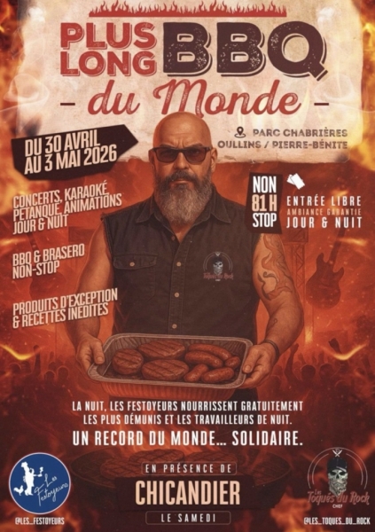 Objectif : maintenir un barbecue allumé et en fonctionnement pendant 74 heures consécutives, sans interruption. Cuisson, service et animations seront assurés 24h/24, dans ce qui s’annonce comme une tentative officielle de record du monde.