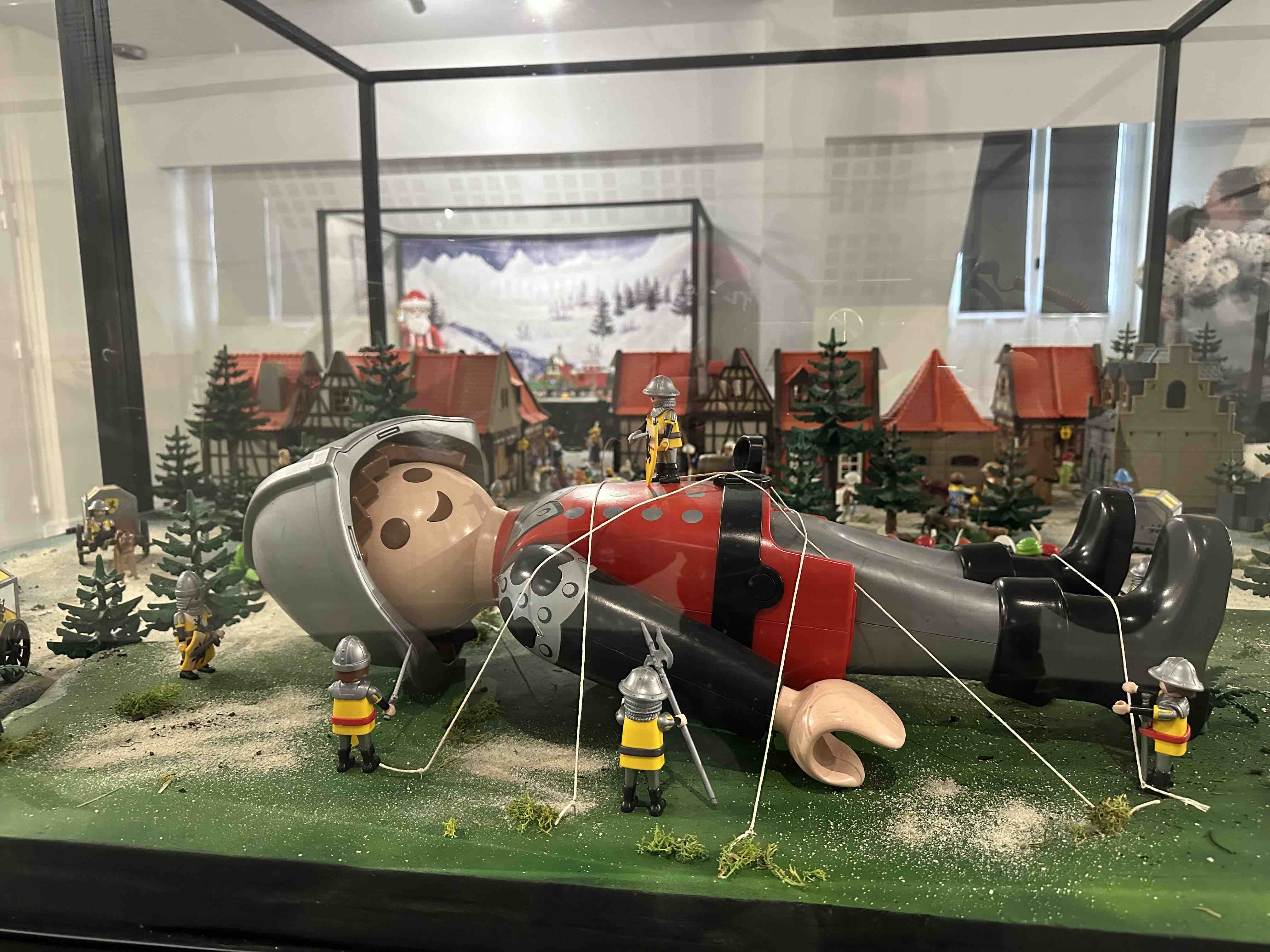 Douze scenettes avec des milliers de pièces, qui rendent hommage aux contes, mais aussi à la figurine, qui fêtera ses 50 ans en 2024. Vous retrouverez donc beaucoup de châteaux, de jungles aussi. Mais également l'univers d'Aladin, du Moyen-Âge, et même du Père-Noël, à la fin du parcours. La visite de l'exposition est comprise dans l'entrée pour le château.
