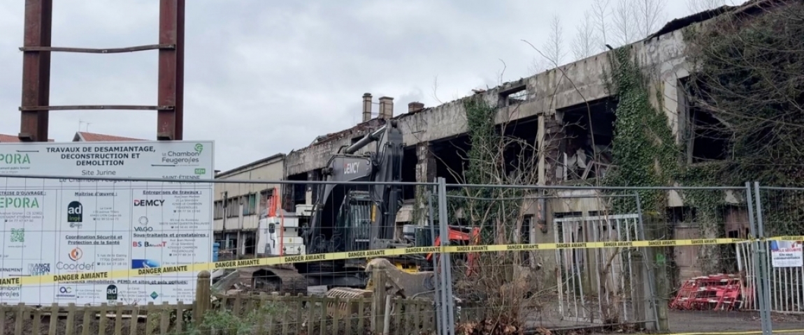 C’est un terrain complètement laissé à l’abandon qui se trouve dans ce quartier résidentiel de Trémolin, au Chambon-Feugerolles. Depuis 2007, l’ancien site de Jurine, autrefois dédié au tissage, a cessé son activité. Racheté par la ville avec l’aide d’EPORA en décembre 2024, les travaux ont pu commencé il y a 15 jours. La réhabilitation de ce terrain est estimée à plus de deux millions d’euros.