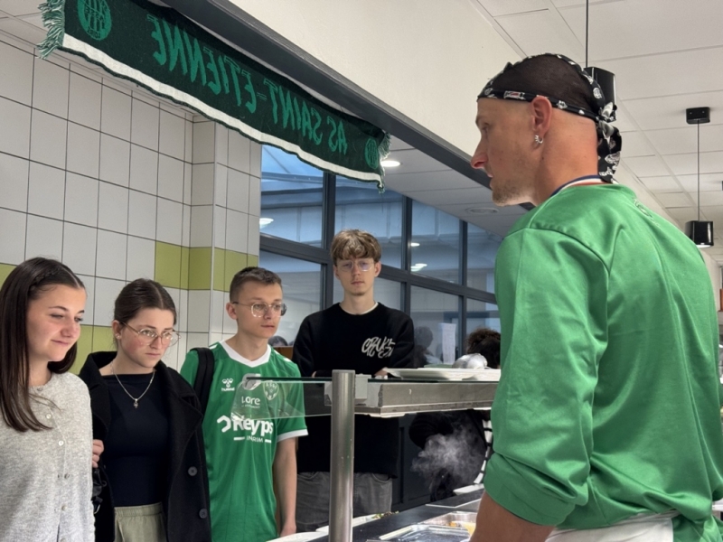 Au programme : maillots verts, écharpes, et un repas typiquement stéphanois servi au self. Les cuisiniers, complices de l'événement, ont animé le service en taquinant les élèves tout en leur faisant découvrir la cuisine locale.