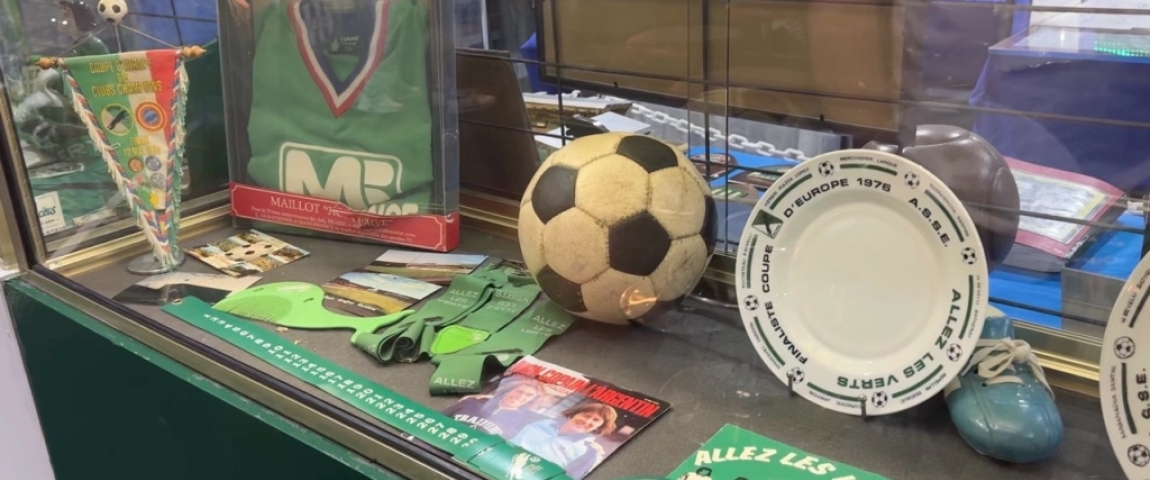 Derrière les vitrines, bien plus que des objets : des morceaux d’histoire. Journaux, photos, maillots, écharpes ou encore fanions… autant de traces d’une époque où tout un territoire vibrait au rythme de l’ASSE.