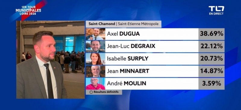 Pas de place au suspense dans la seule ville du département où le vote électronique a rapidement révélé les tendances dès 19h30. Axel Dugua, maire sortant et candidat LR, s’impose en tête avec 38,69 % des suffrages, soit 16 points d’avance sur son plus proche rival. « Les Saint-Chamonais nous font confiance, ce qu’on a fait ces douze dernières années a été une bonne chose pour la ville », déclare-t-il, refusant toute idée de fusion avec ses adversaires.