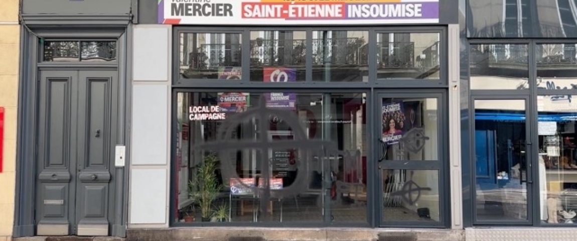 Des dégradations ont été constatées ce lundi matin sur la permanence de Valentine Mercier, candidate investie par La France insoumise pour les prochaines élections municipales à Saint-Étienne.