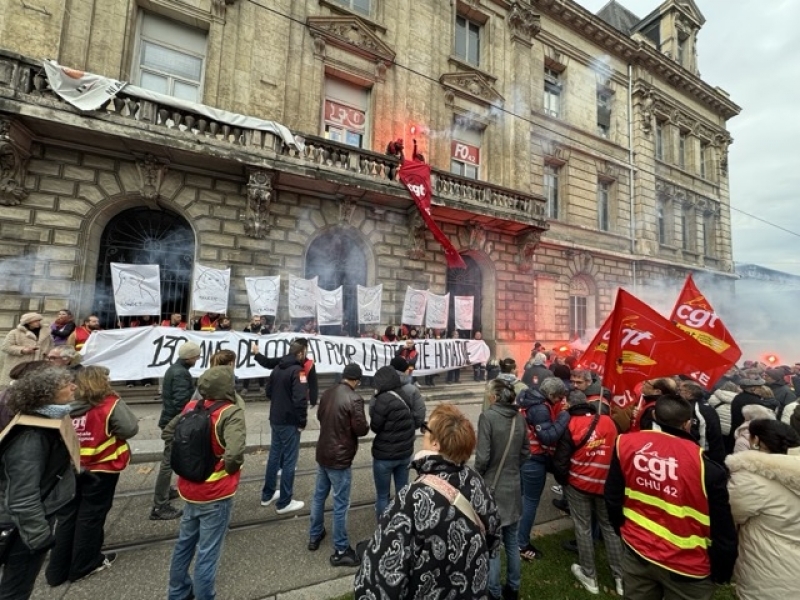 « Nous sommes mobilisés partout en France contre un budget qui fait encore peser les efforts sur les salariés, retraités et privés d’emploi », explique Mireille Carrot, secrétaire générale de l’Union départementale CGT de la Loire.
