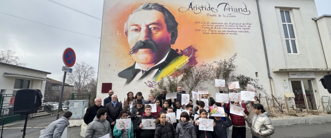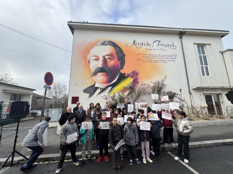 Une fresque pour rappeler l’histoire de la laïcité. À Saint-Étienne, l’école du Soleil a accueilli une œuvre dédiée à Aristide Briand, figure clé de la loi de 1905. Les élèves de CM2, qui ont préparé des textes sur le sujet, ont expliqué ce qu’ils ont retenu de cet héritage. « Aristide Briand, c’était un avocat », rappelle Aïcha. « Il a été plusieurs fois ministre », ajoute Anas. « C’était la première personne qui a demandé la paix avec l’Allemagne », souligne Shaïma. « Il a décroché l’Église et l’État », précise Anas, maladroitement. Pour les élèves, Briand incarne l’égalité et la liberté, mais il est surtout un ancien député de la Loire et a joué un rôle central dans l'élaboration de la loi de séparation des Églises et de l'État en 1905.