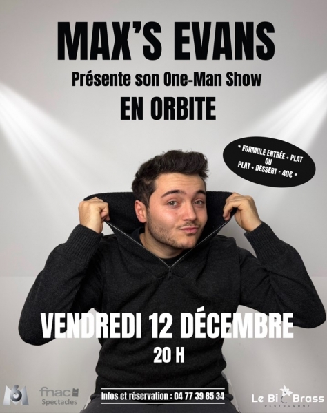 Max’s Evans a grandi en Ardèche et vit aujourd'hui à Valence où il ouvert cette année un Comedy Club. Parallèlement, il a créé un nouveau one-man show intitulé "En orbite", produit par Kev Adam. D'une durée de 45 minutes et accessible à tous les publics, ce spectacle mêle humour et émotions en abordant avec légèreté et sensibilité les petites situations du quotidien.