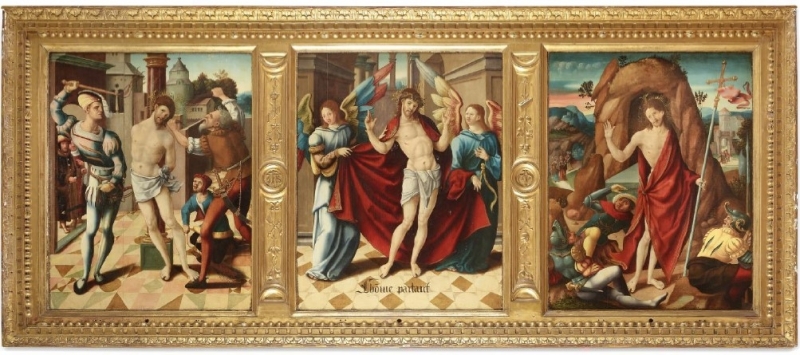 Le 27 novembre, c’est un triptyque de l’Ecole Troyenne, vers 1520, avec La Flagellation, Le Christ aux anges, La Résurrection, qui sera proposé avec une estimation de 300 000/400 000€. Ce triptyque provient de la Collection Julien Gréau (1810-1895), industriel né d’une grande famille de Champagne, mais avant tout grand collectionneur et passionné de l’Antiquité et de l’art du Moyen Âge. Durant cette même vente exceptionnelle à Saint-Etienne, figure une Ecole anversoise du XVIe siècle, suiveur de Quentin Metsys Le déploration sur le corps du Christ (estimation 6 000/8 000€), un triptyque de l’Ecole Brugoise vers 1520, atelier du Maître du Saint Sang La déploration sur le corps du Christ, Saint Madeleine et Saint Nicodème (estimation 40 000/60 000€), un dessin à la sanguine d’Hubert Robert signée et daté 1761, représentant Vue du cloître des Chartreux à Rome dans les Thermes de Dioclétien, et de très belles pièces de mobilier et objets d’art parmi lesquelles une pendule à cadran tournant en bronze doré époque XVIIIe siècle, une belle pendule d’époque Empire en forme d’urne, une paire de rafraichissoirs en acajou dans le gout de Canabas et une paire de commodes demi-lune en marqueterie estampillées Schey.