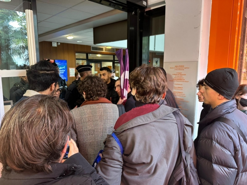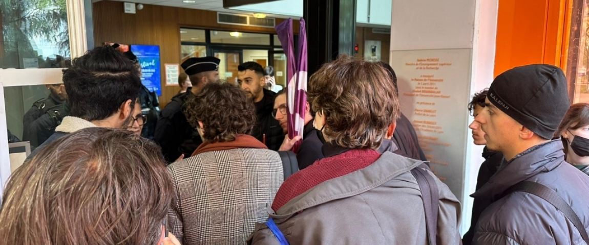 Ce mardi, le blocage s'est poursuivi. La police est intervenue dans le calme pour chasser les manifestants. Ils sont alors allés en direction de la Maison de l'Université. Ces étudiants de Science Po veulent des explications sur cette intervention. Ils demandent à voir Florent Pigeon, président de l'université Jean-Monnet.