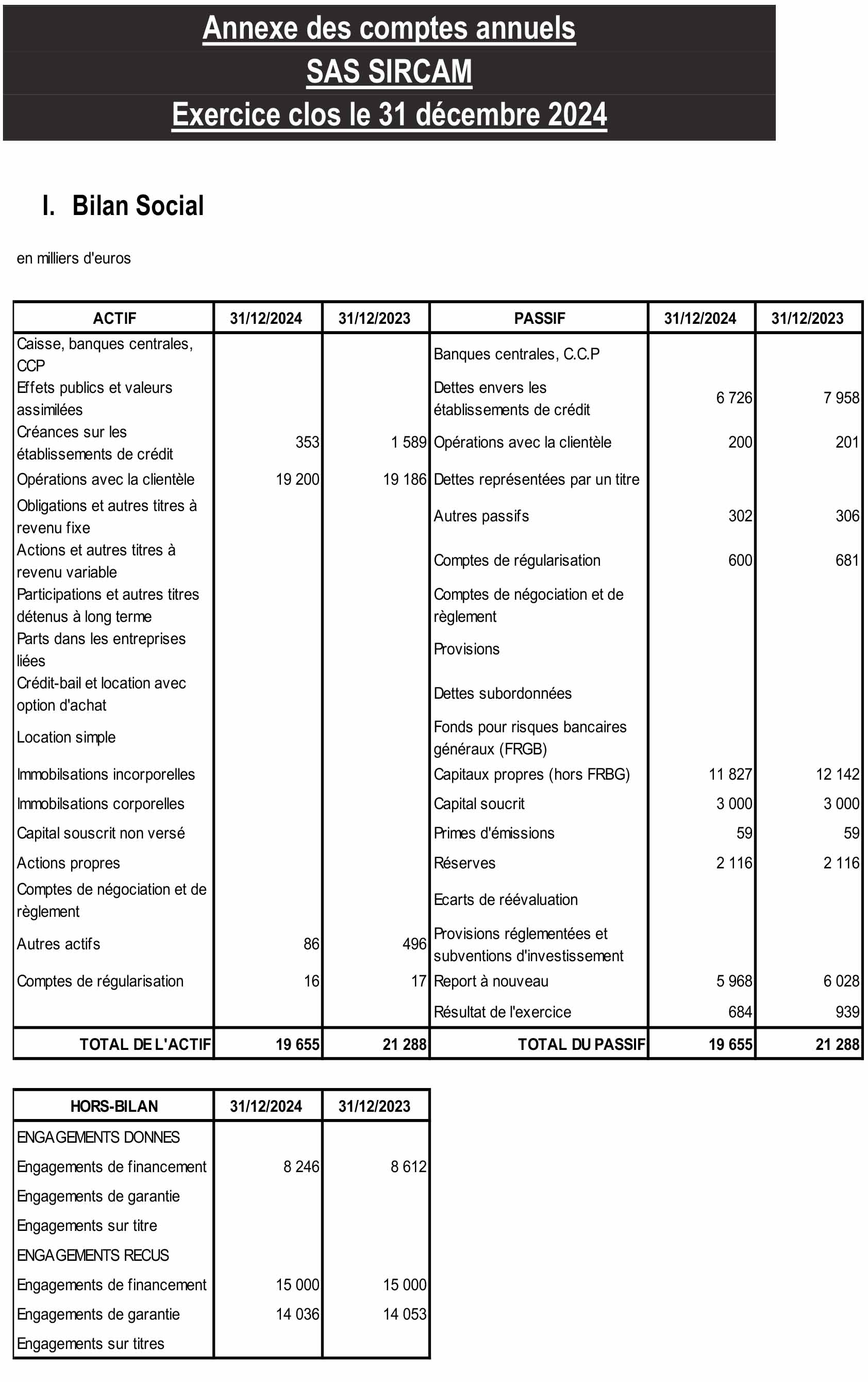 En exécution de la mission qui nous a été confiée par votre Assemblée Générale Ordinaire, nous avons effectué l’audit des comptes annuels de la société SIRCAM relatifs à l’exercice clos le 31 décembre 2024, tels qu’ils sont joints au présent rapport.