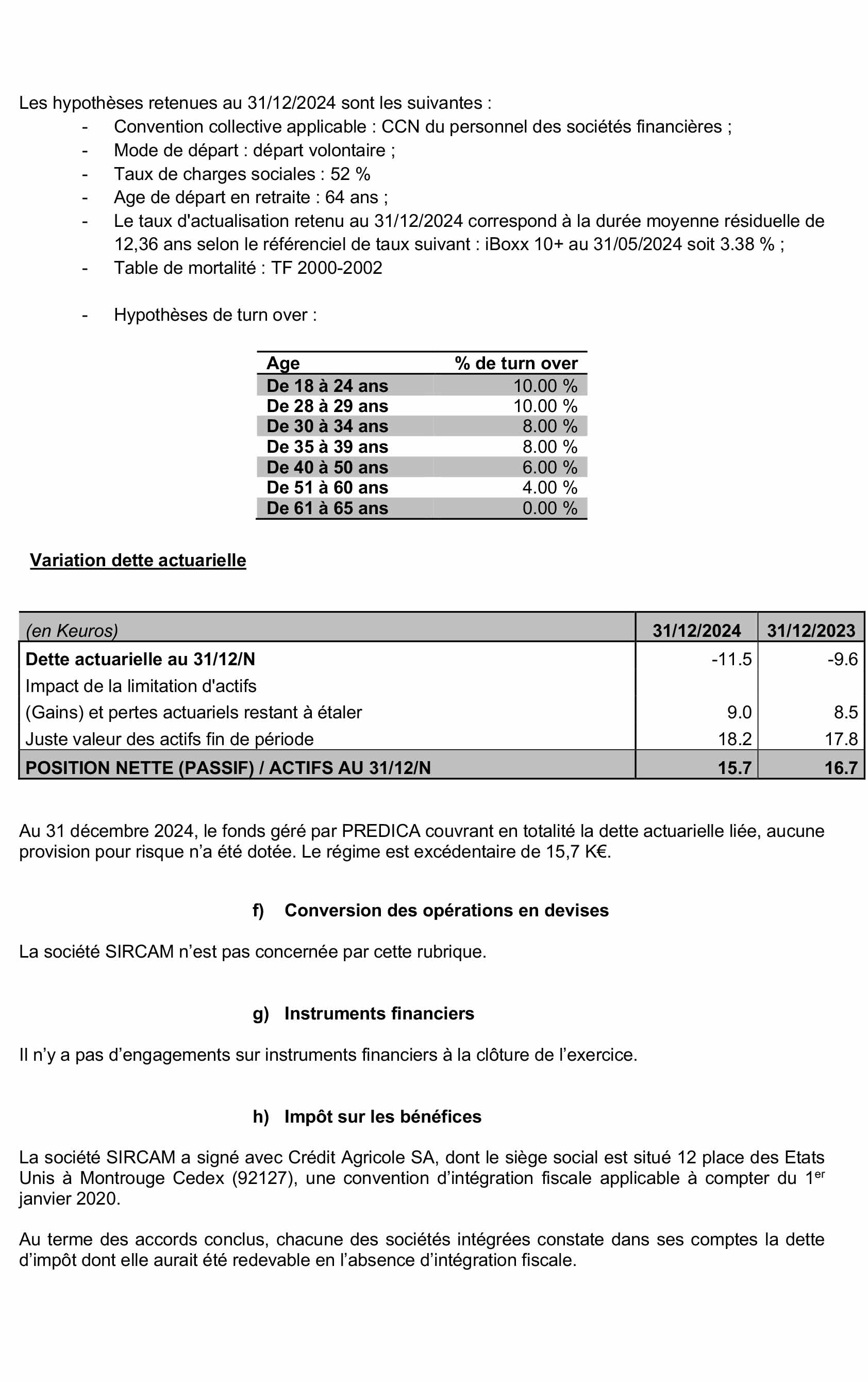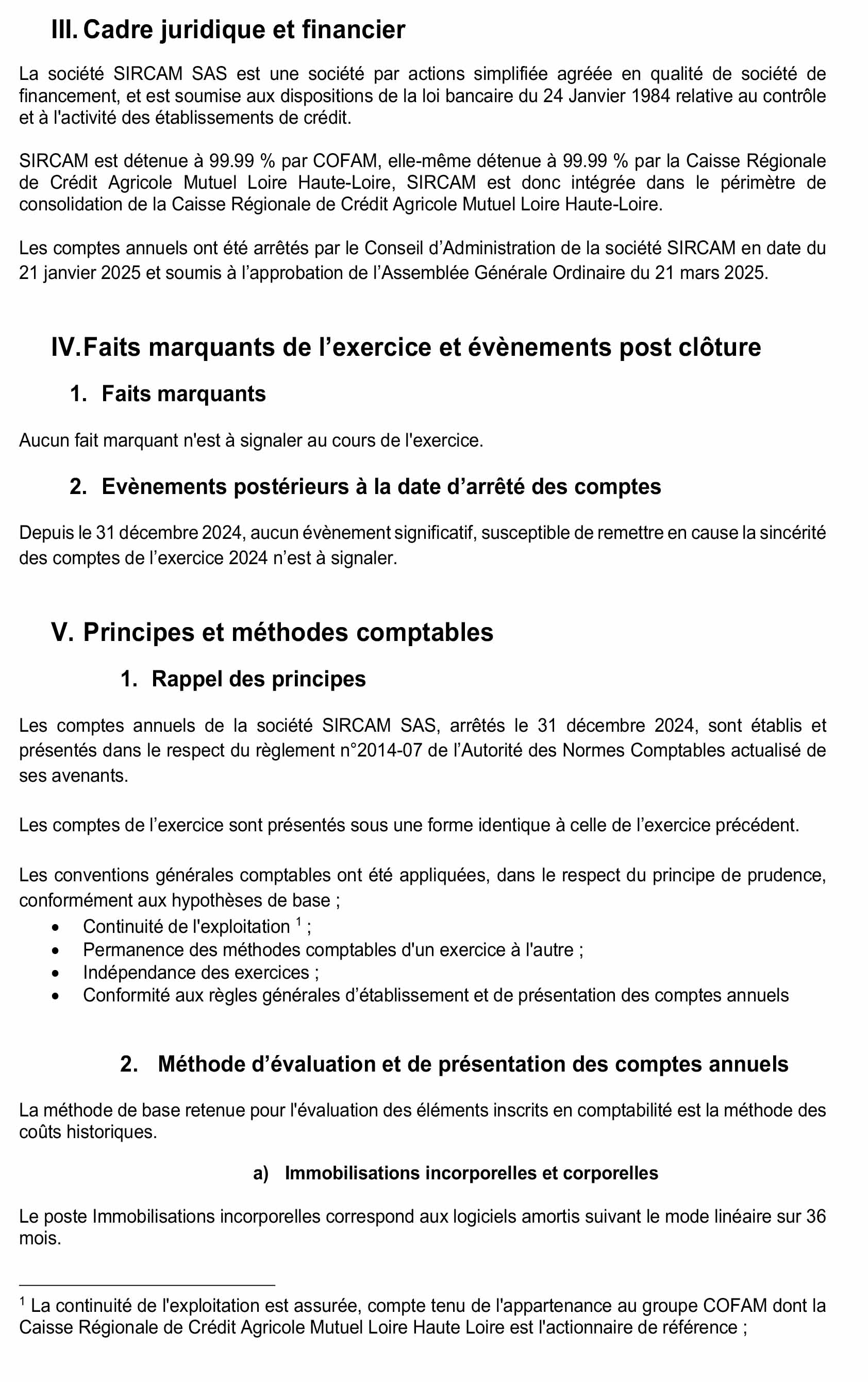 ANNEXE DES COMPTES ANNUELS SAS SIRCAM