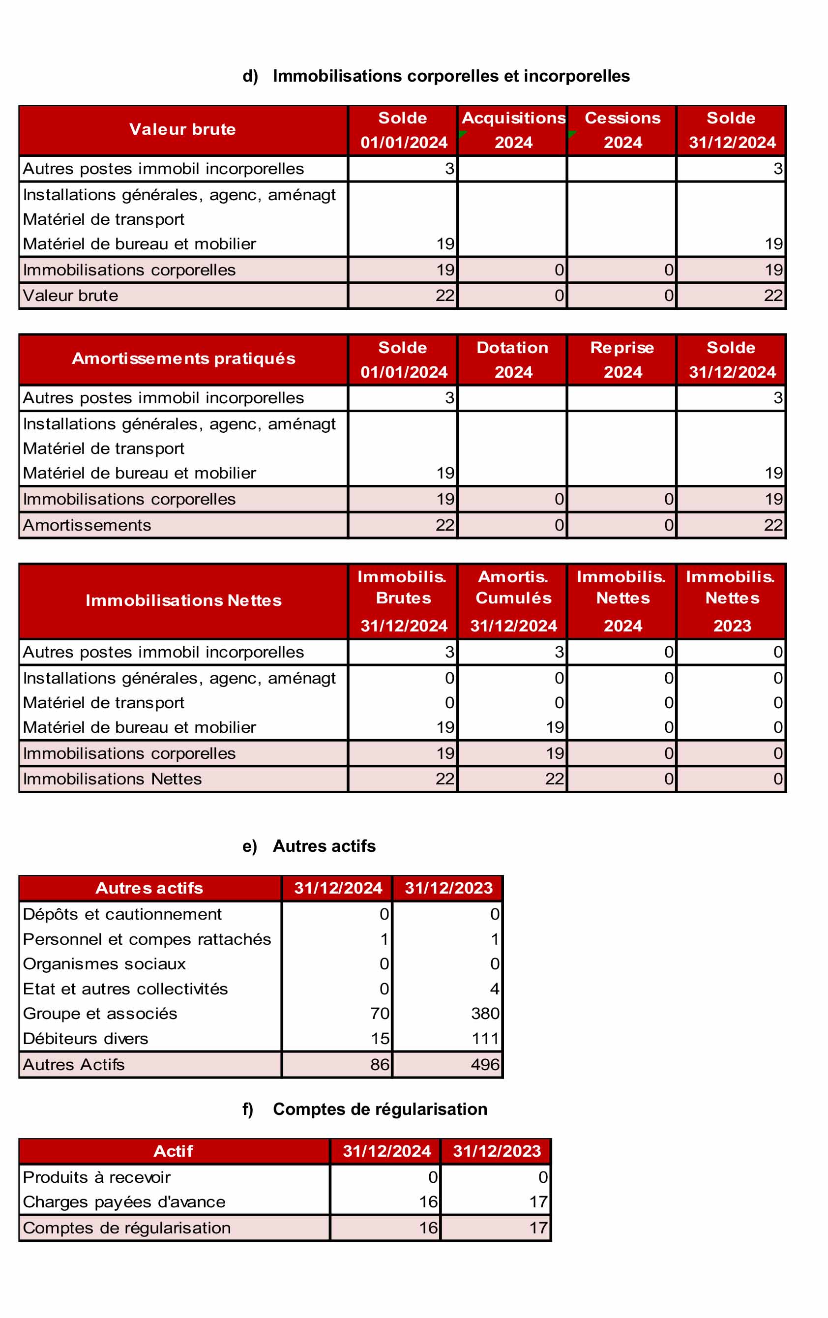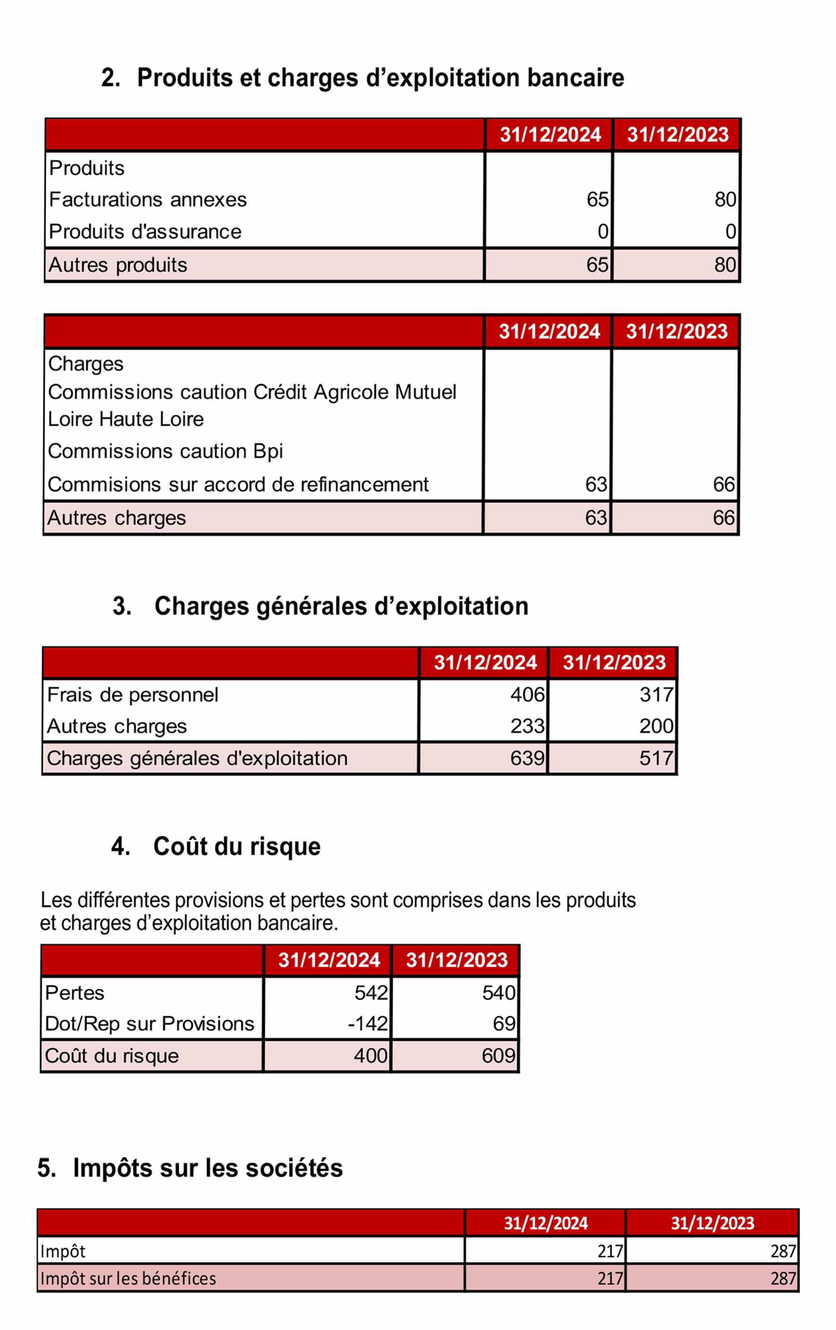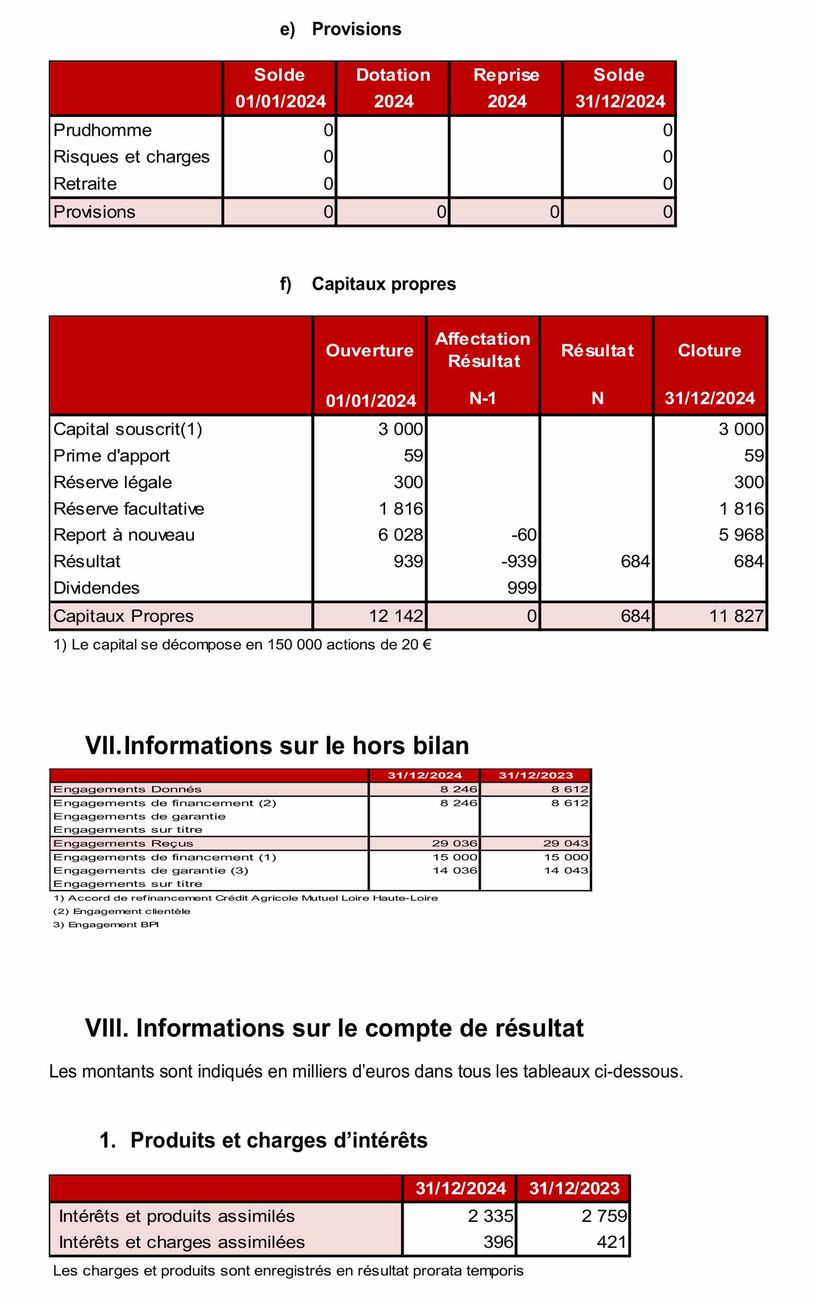 Les opérations avec la clientèle, figurant au bilan au 31 décembre 2024 pour un montant net de 19 200 Milliers d’euros, . Comme indiqué dans le paragraphe « Méthode d’évaluation et de présentation des comptes annuels », alinéa b « opérations avec la clientèle « une provision pour dépréciation est pratiquée lorsque la valeur d’inventaire est inférieure à la valeur comptable.